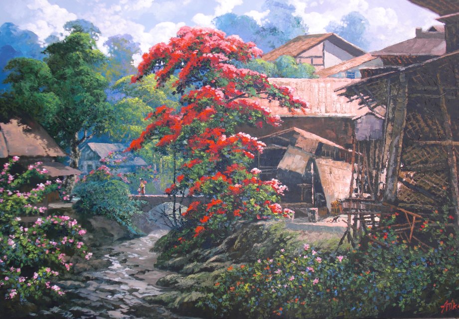 46+ gambar lukisan pemandangan alam desa GIF - GambarAlam